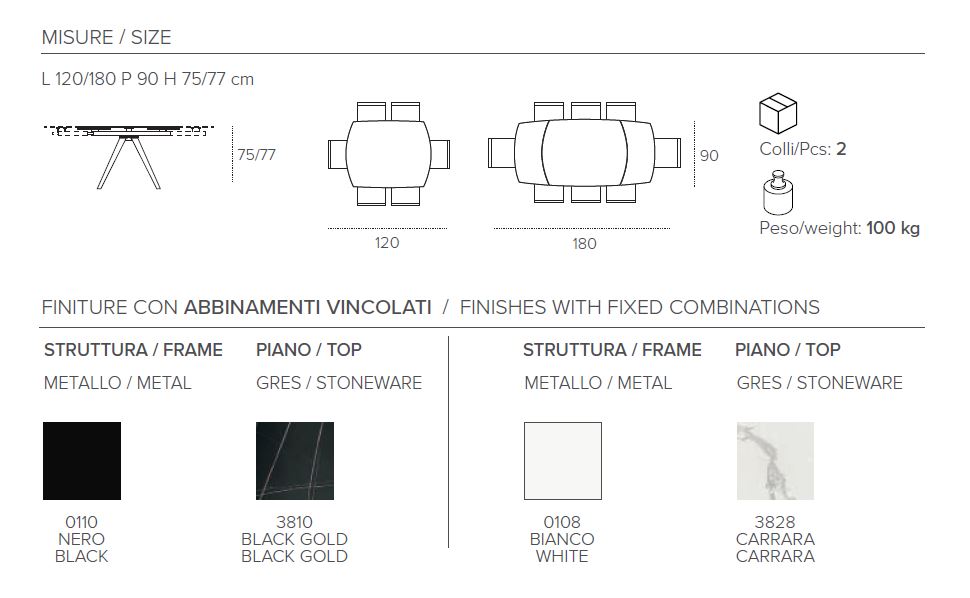TAVOLO GIREVOLE 90X120 ALL.180 TARGET POINT CAPONORD BLACK GOLD E BIANCO CARRARA