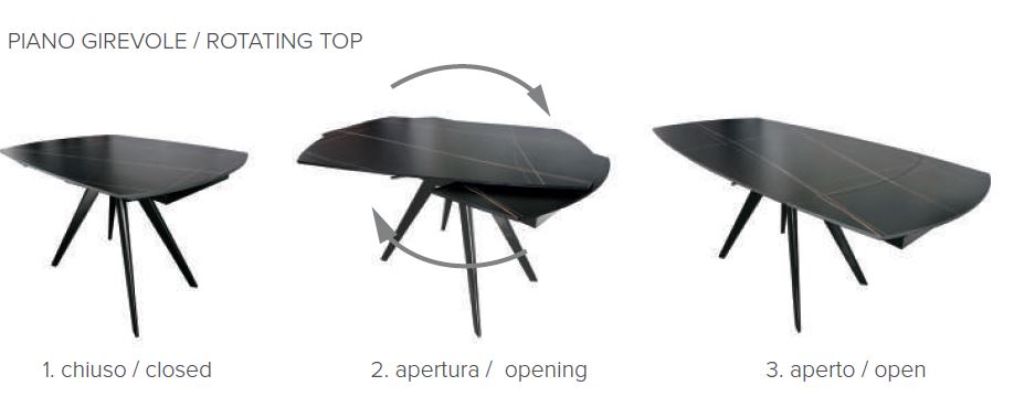 TAVOLO ALLUNGABILE CON STRUTTURA IN METALLO VENRICIATO E PIANO GIREVOLE IN GRES PORCELLANATO EFFETTO MARMO SPESSORE 12MM