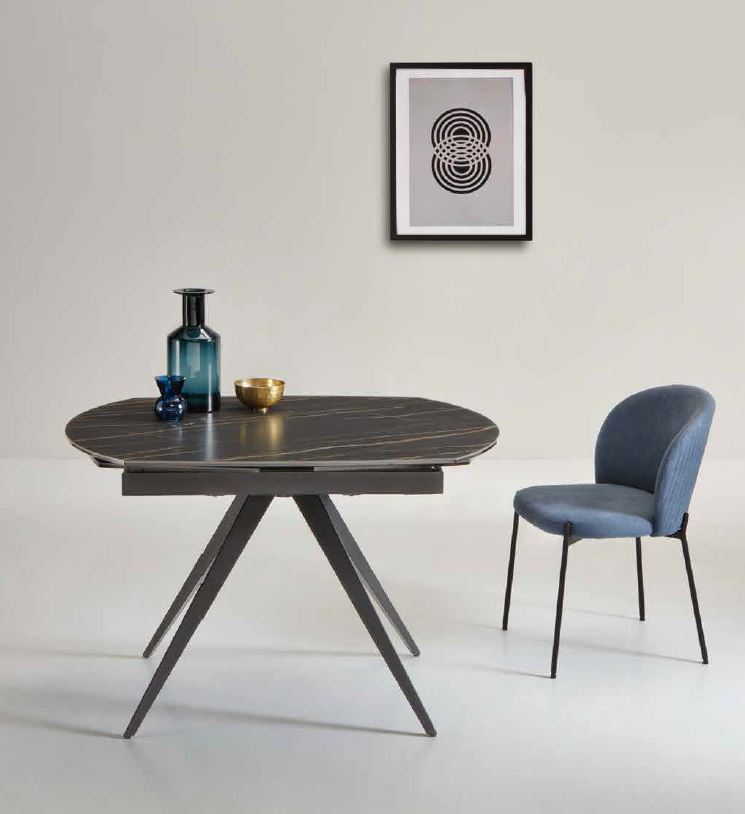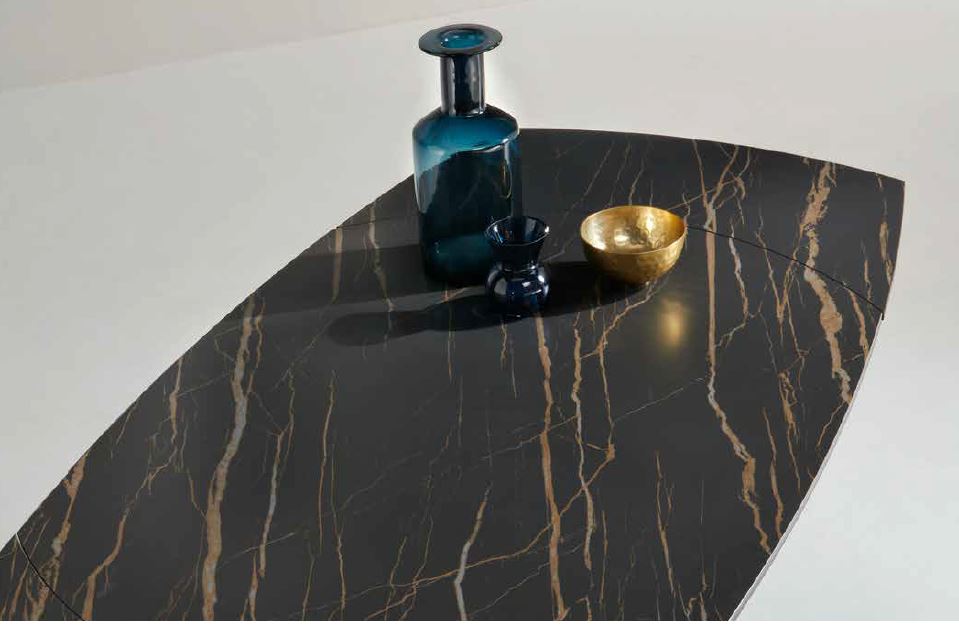 Tavolo allungabile telescopico con base in metallo verniciato e top in grès porcellanato effetto marmo nero opaco