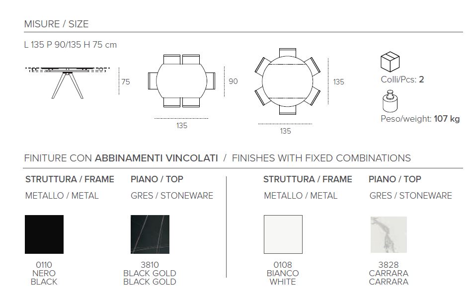 TAVOLO GIREVOLE 90X135 ALL.135X135 TARGET POINT CICLONE BLACK GOLD O CARRARA