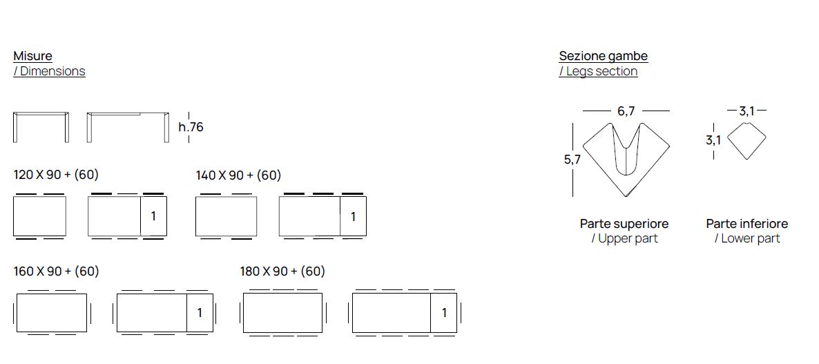 PREZZO QUI INDICATO VERSIONE 90X120 ALLUNGABILE 180 PIANO CLEAF, PER TUTTE ALTRE MISURE E FINITURE INVIARE RICHIESTA MAIL O WHATSAPP