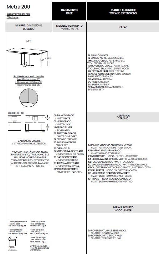 TAVOLO METRA POINTHOUSE FINITURE E MISURE VARIE