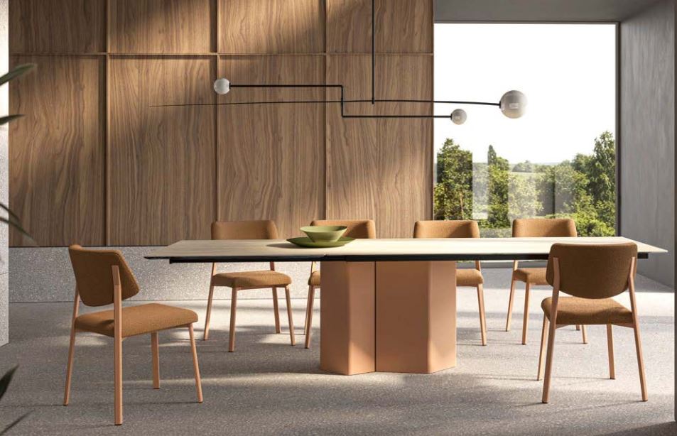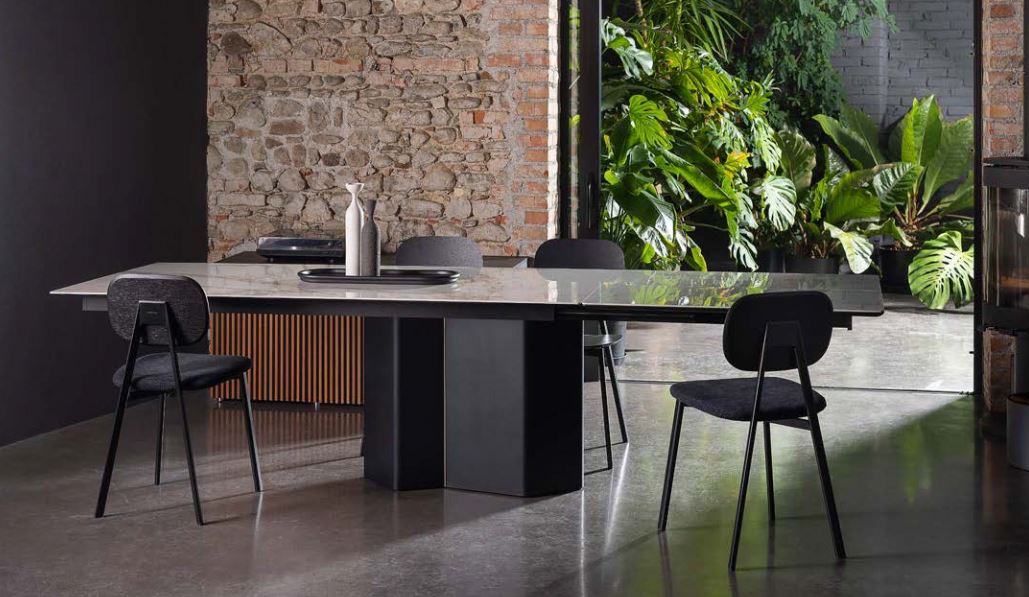 Metra è un tavolo dal carattere deciso e contemporaneo, definito da una base in lamiera verniciata a polveri e disponibile in diverse finiture. Proposto nelle versioni fissa e allungabile, Metra può essere abbinato a piani in Cleaf, ceramica o impiallacciato rovere, offrendo soluzioni versatili e di grande impatto visivo per l’area living.