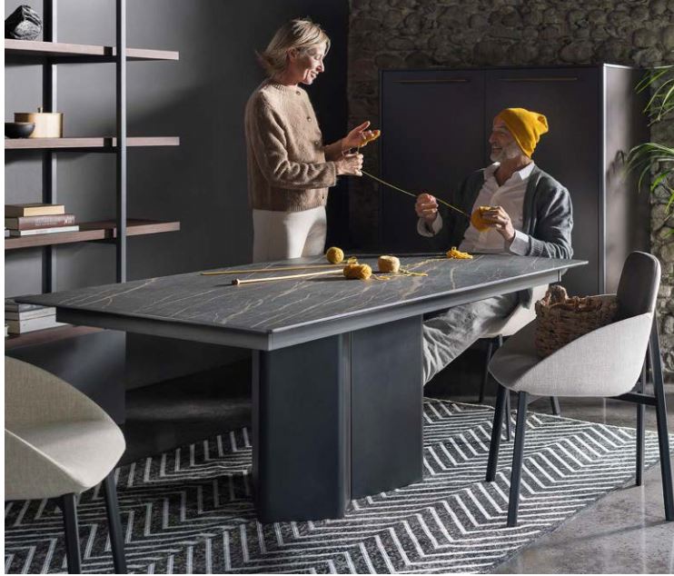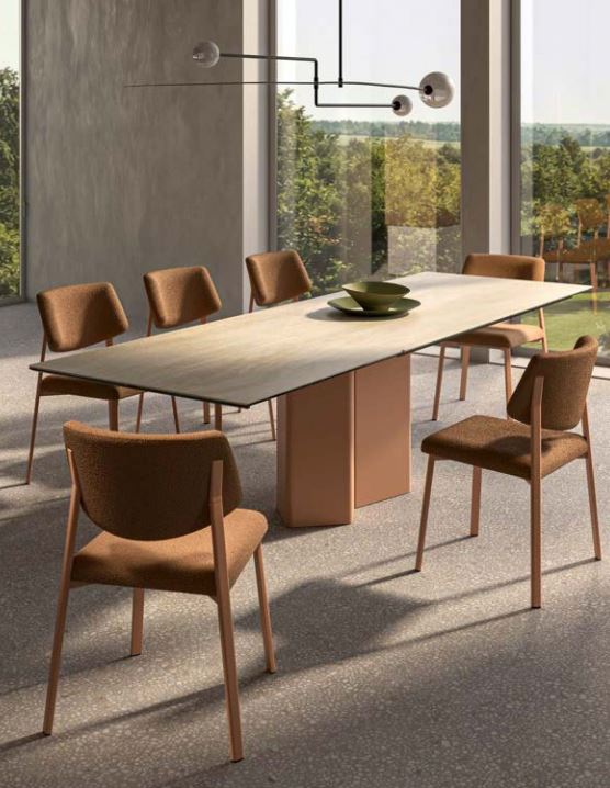Metra è un tavolo dal carattere deciso e contemporaneo, definito da una base in lamiera verniciata a polveri e disponibile in diverse finiture. Proposto nelle versioni fissa e allungabile, Metra può essere abbinato a piani in Cleaf, ceramica o impiallacciato rovere, offrendo soluzioni versatili e di grande impatto visivo per l’area living.