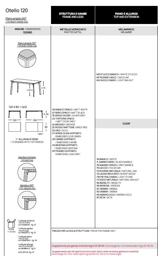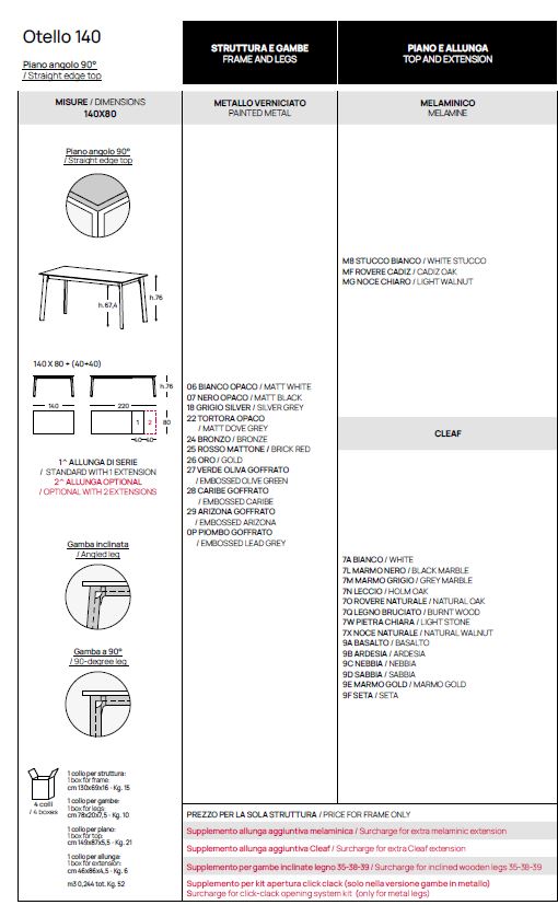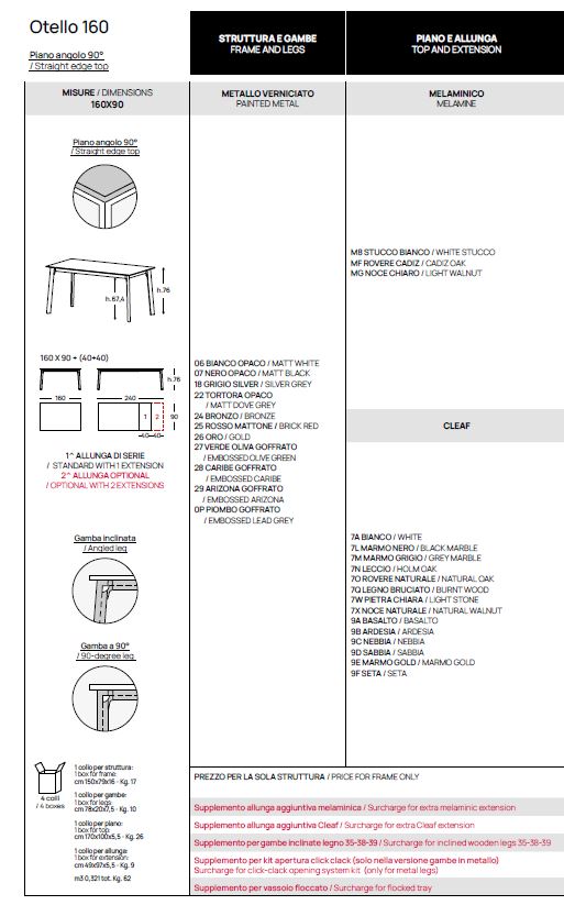 80X120 ALL.160, 80X140 ALUNGABILE 180-220 (SECONDA ALLUNGA OPTIONAL), 90X140 ALLUNGABILE 180-220 (SECONDA ALLUNGA OPTIONAL), 90X160 ALLUNGABILE 200-240 (SECONDA ALLUNGA OPTIONAL), 90X180 SOLO PLUS ALLUNGABILE 220-260 (SECONDA ALLUNGA OPTIONAL), 100X200 SOLO PLUS ALLUNGABILE 240-280 (SECONDA ALLUNGA OPTIONAL)