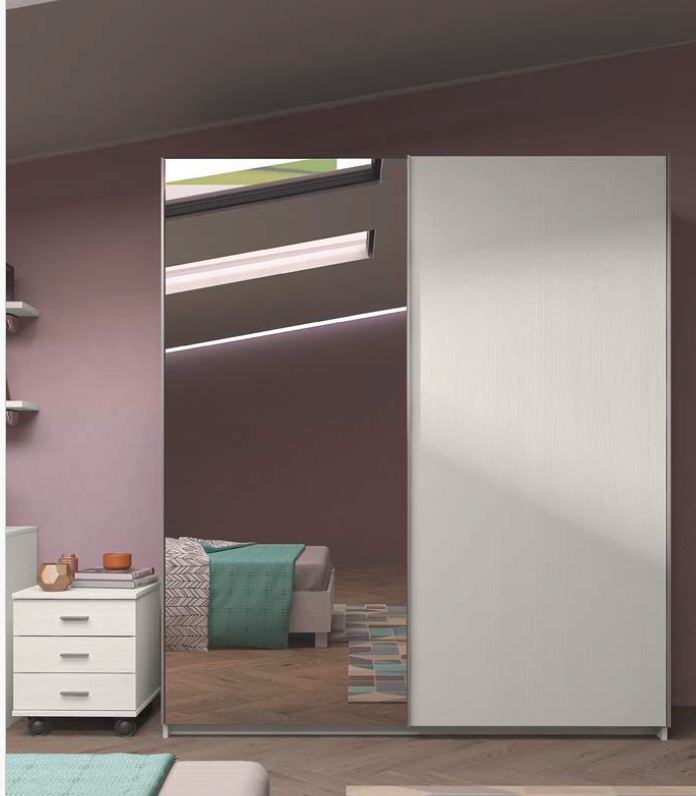 ARMADIO SCORREVOLE 2 ANTE CON 1 SPECCHIO ALTEZZA 210 LARICE BIANCO OPPURE OLMO