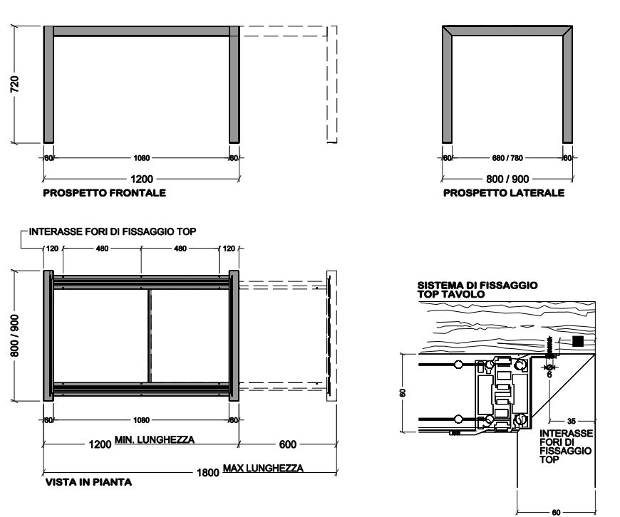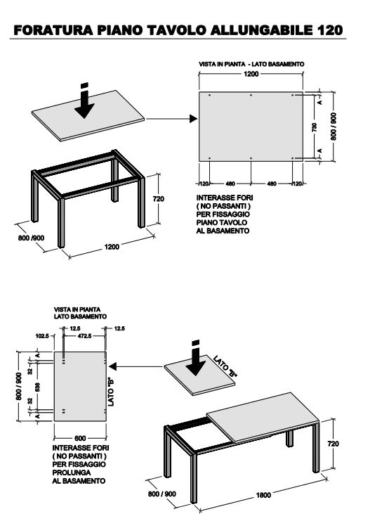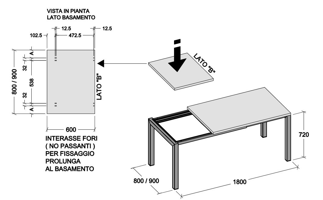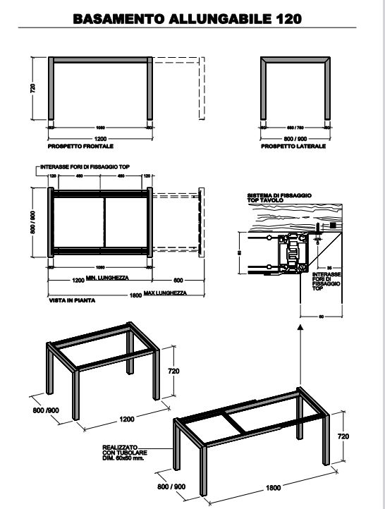 BASAMENTO TAVOLO 120 ALLUNGABILE 180X80/90 PER PIANO CLIENTE COLORI VARI