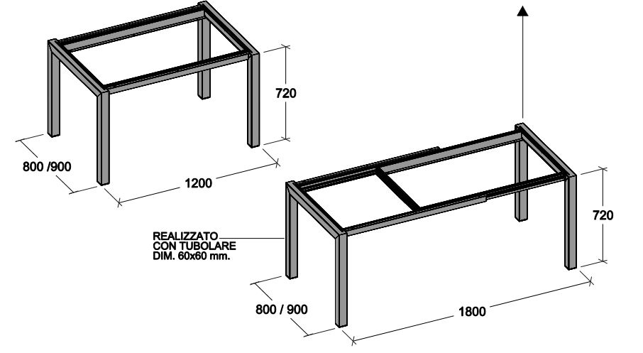stuttura tavolo in tubolare di ferro non realizzabile fuori misura.
