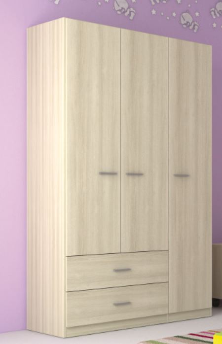 -ARMADIO 3 ANTE CON 2 CASSETTI ESTERNI LARGHEZZA 119 PROF.54 ALTEZZA 210, CON 1 RIPIANO E 2 TUBI SUL MODULO SINGOLO E 1 TUBO SUL MODULO 2 ANTE