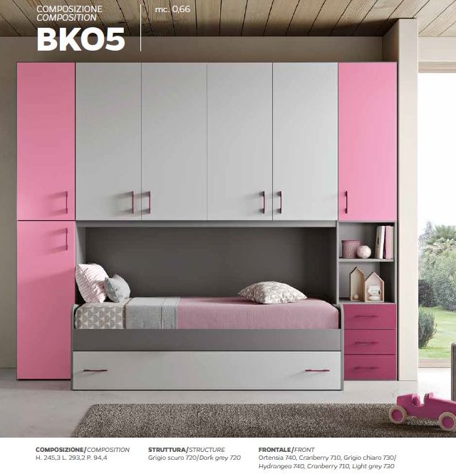 IN FOTO STRUTTURA GRIGIO SCURO 720 FRONTALI ORTENSIA 740, CRANBERRY 710, GRIGIO CHIARO 730