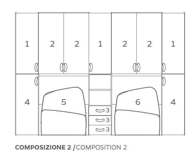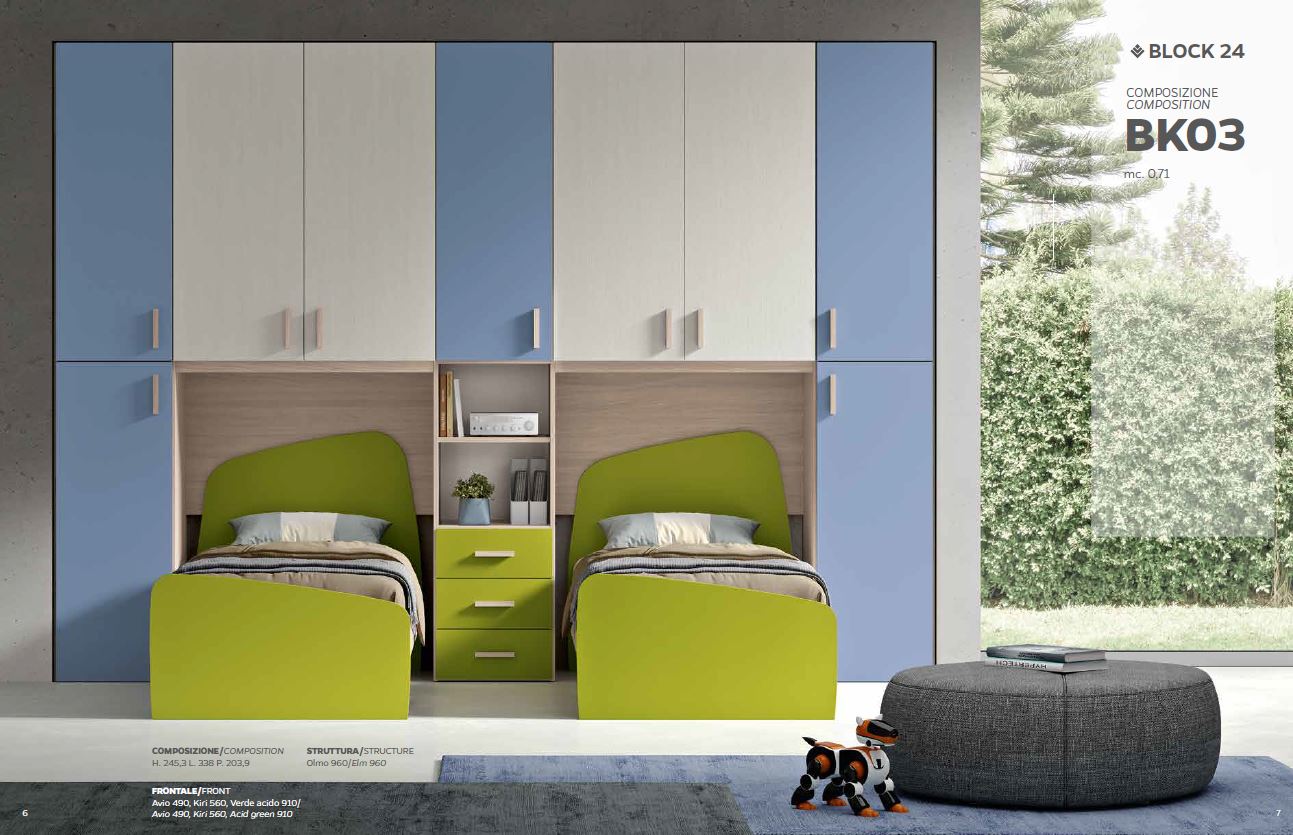 CAMERETTA PONTE CON 2 LETTI SINGOLI COLORI VARI BK03