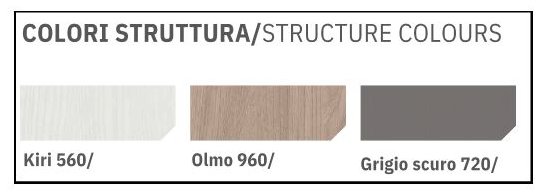 COLORI STRUTTURA: KIRI 560. OLMO 960,. GRIGIO SCURO 720