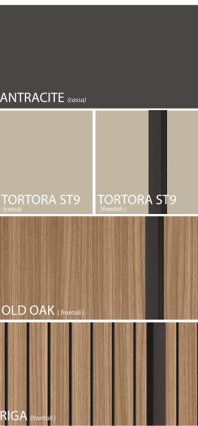Le righe rappresentano un elemento decorativo intramontabile, capace di trasformare e modernizzare qualsiasi spazio. Questo elemento diventa protagonista, conferendo un carattere distintivo e di tendenza. Le strutture sono in tonalità neutra Tortora o Antracite che permettono di risaltare il motivo decorativo a righe presente nei frontali. Le righe, di colore grigio antracite, aggiungono un tocco di dinamismo e modernità, creando un punto focale che cattura l’attenzione.
