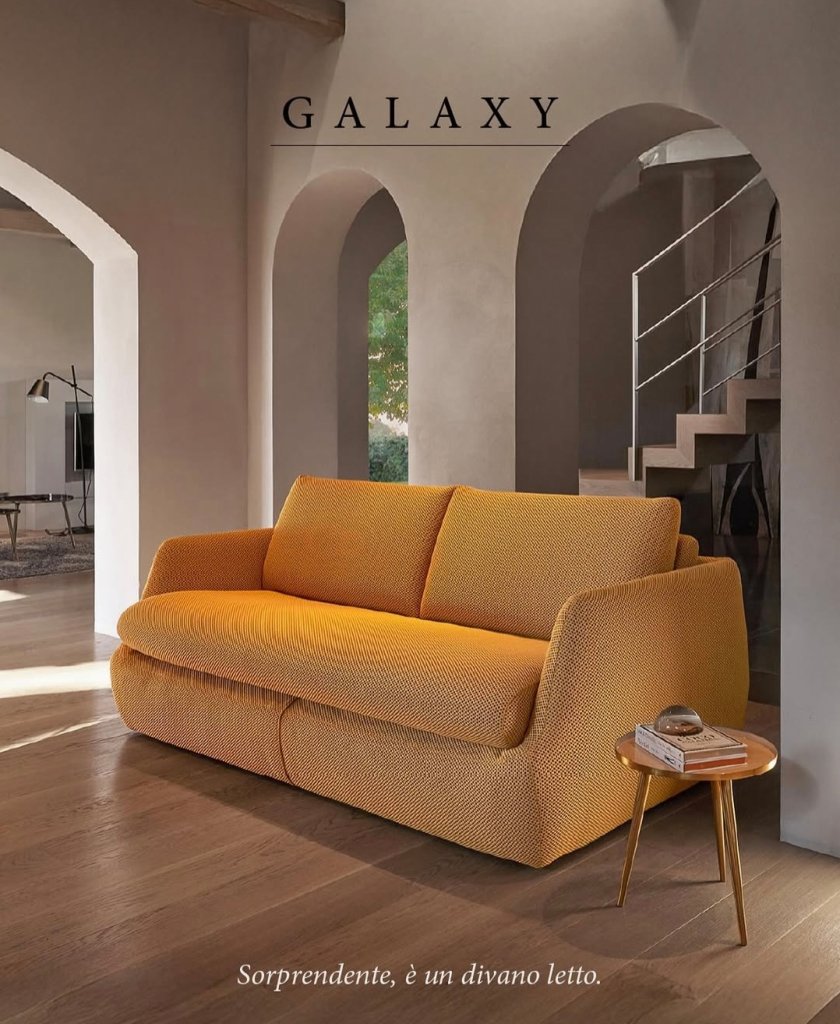 Avvolgente e dalle linee dinamiche, Galaxy sembra arrivato dal futuro per dare al confort uno spiccato tocco di attualità elegante e funzionale.