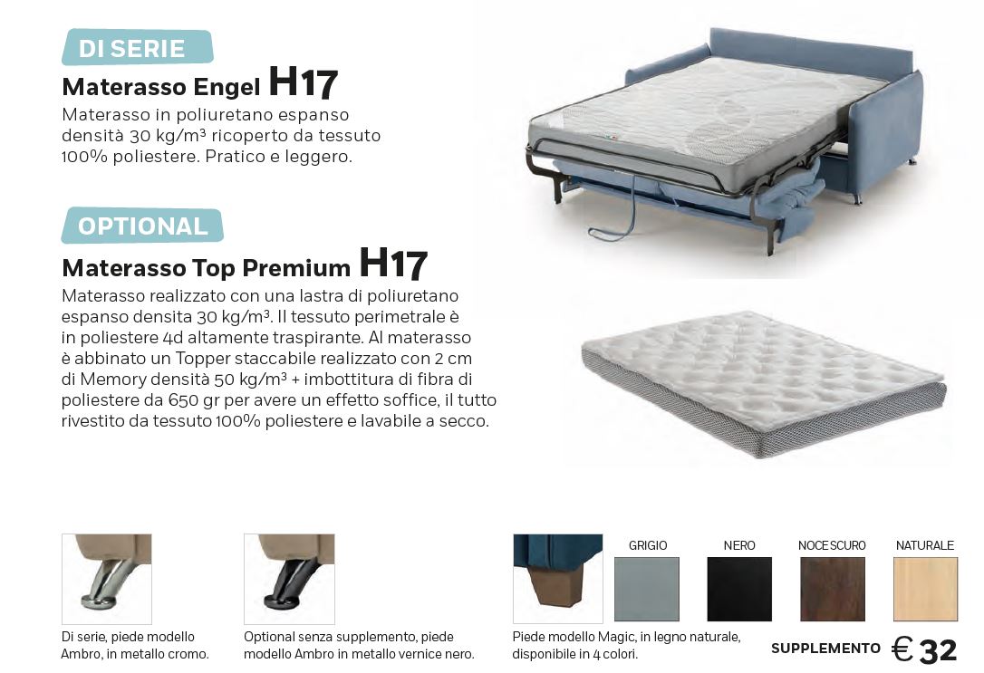 MATERASSO TOP PREMIUM E PIEDI MAGIC OPTIONAL CON MAGGIORAZIONE SU RICHIESTA