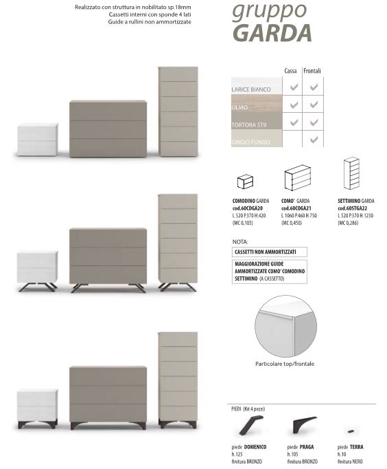 GRUPPO COMO+2 COMODINI GARDA COLORI VARI