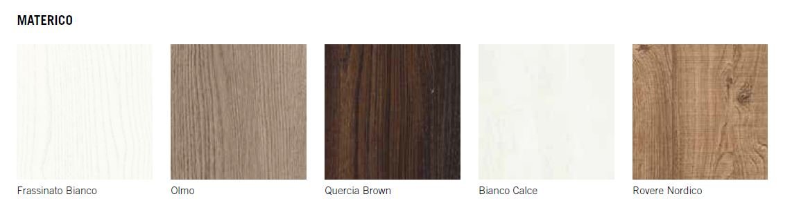 TOP, FIANCHI E CASSETTI SONO REALIZATI CON PANNELLI NOBILITATI OLMO GREY, QUERCIA BROWN, FRASSINATO BIANCO DI SPESSORE 20