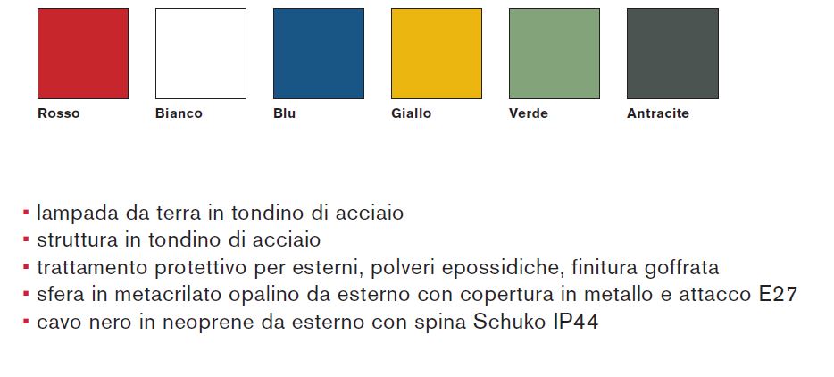 • sfera in metacrilato opalino da esterno con copertura in metallo e attacco E27