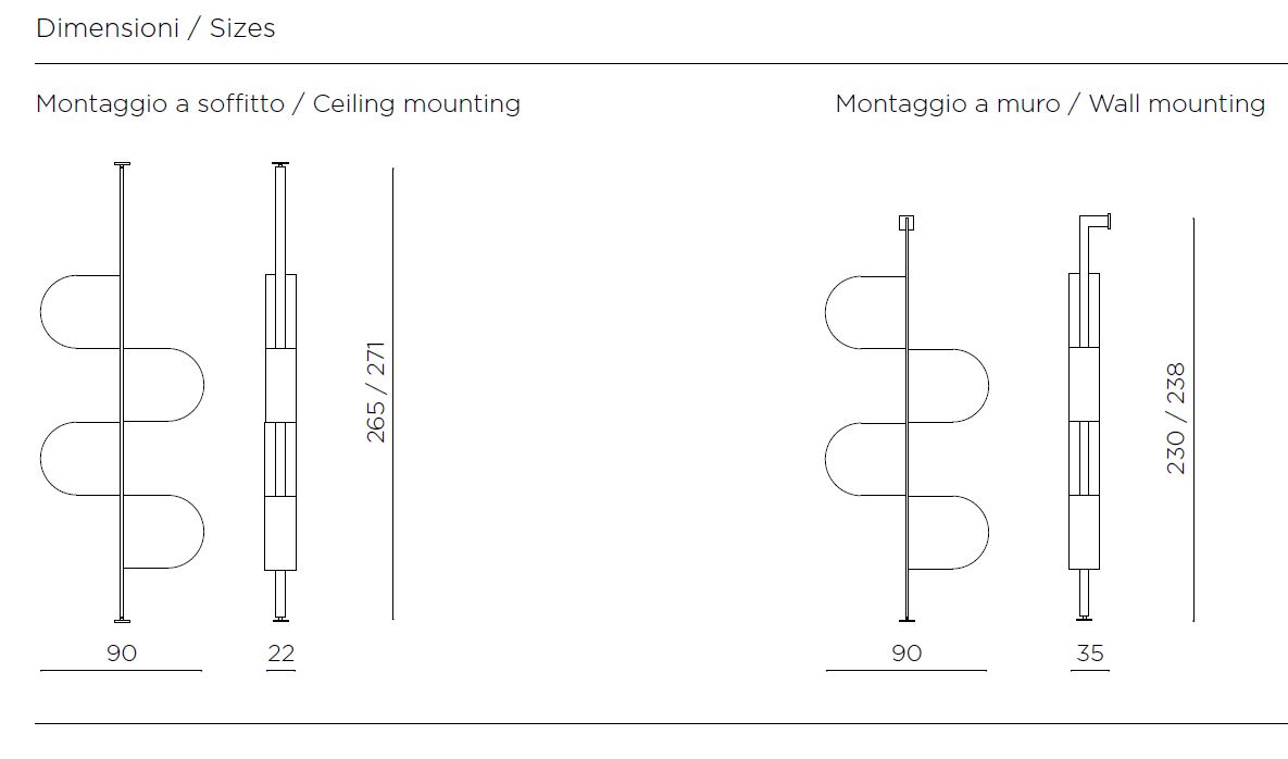 Disponibile con fissaggio a muro o fissaggio a soffitto.