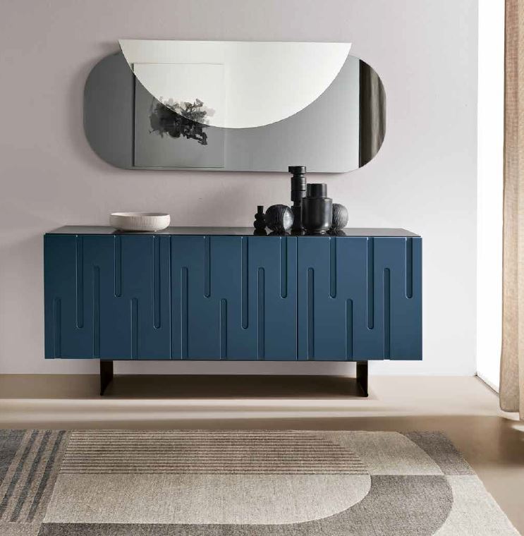 Scilla è una madia dal carattere scultoreo, in cui il design incontra la materia. Le ante in MDF sono percorse da incisioni verticali che salgono