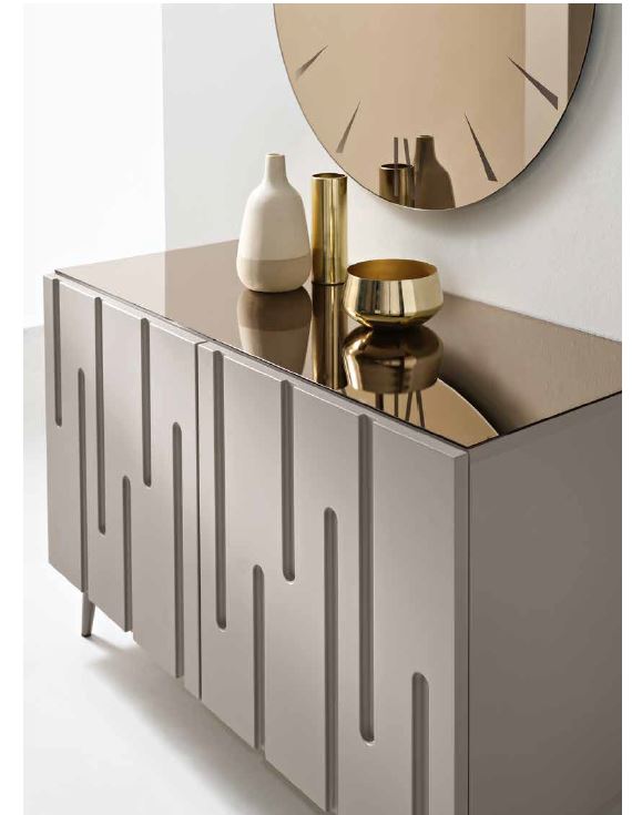 Scilla è una madia dal carattere scultoreo, in cui il design incontra la materia. Le ante in MDF sono percorse da incisioni verticali che salgono