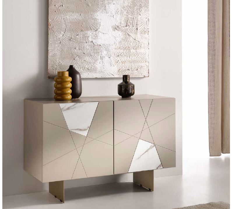Geometrie eleganti e materiali a contrasto definiscono il carattere di Adel, una madia che combina funzionalità e ricercatezza. La scocca in nobilitato accoglie ante in MDF pantografato, attraversate da linee incise che si incontrano per accogliere inserti in vetro effetto marmo, creando un sofisticato gioco grafico e materico. La base in metallo verniciato, disponibile in tre differenti modelli, solleva la struttura con leggerezza e stabilità. Proposta in tre varianti colore, Adel è pensata per dare personalità alla zona giorno con un linguaggio essenziale ma deciso