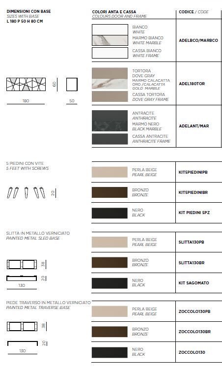 COLORI: BIANCO MARMO BIANCO, TORTORA MARMO CALACATTA ORO, ANTRACITE MARMO NERO