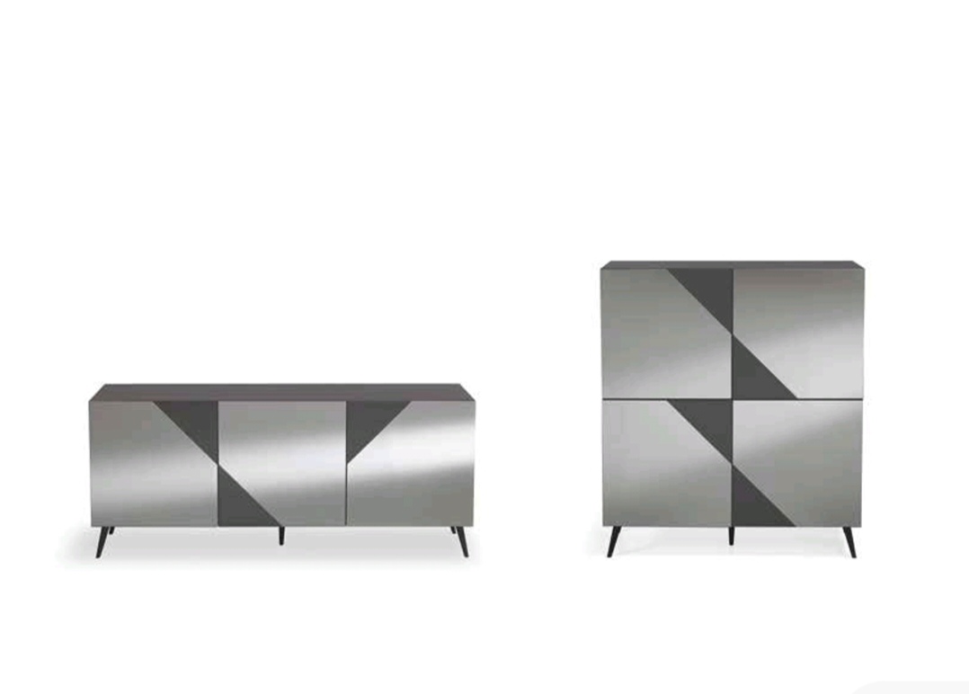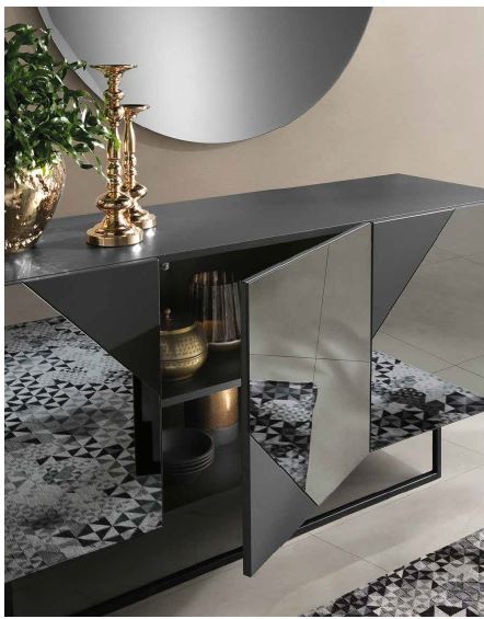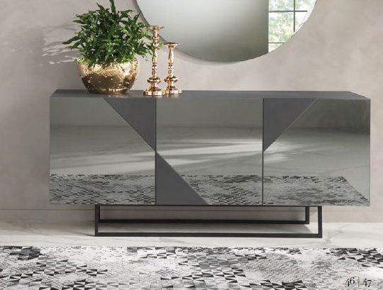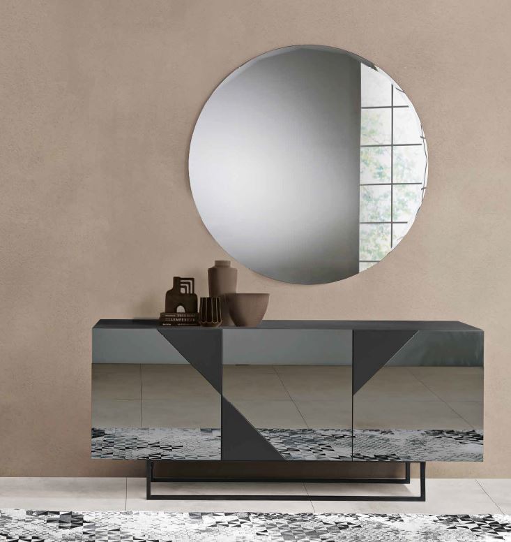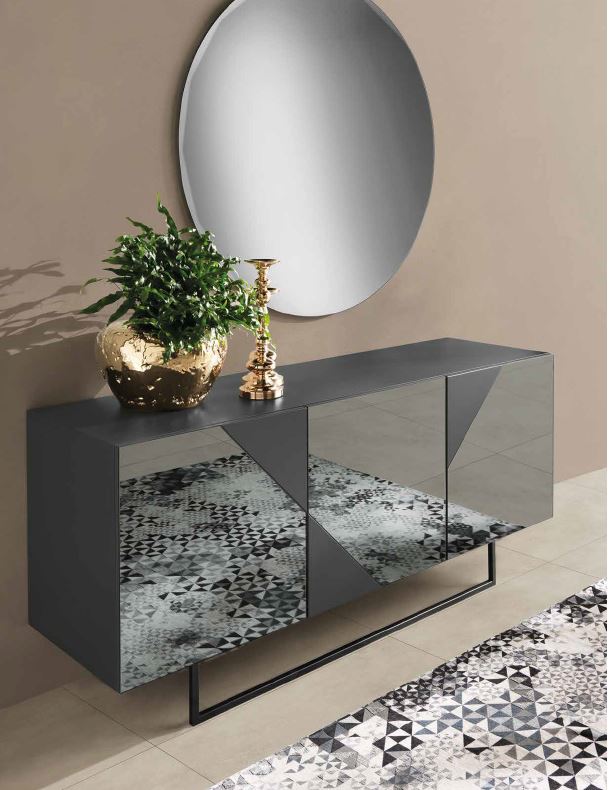 Arte è una madia che cattura lo sguardo grazie alla forza grafica delle sue superfici a specchio. Le ante in MDF, rivestite da vetri specchiati che alternano geometrie lucide e opache, disegnano un motivo elegante e contemporaneo. La scocca in nobilitato, coordinata in tinta, si completa con una base in metallo verniciato, proposta in tre differenti modelli. Disponibile in due misure – 120 e 180 cm – Arte riflette lo stile in ogni dettaglio.
