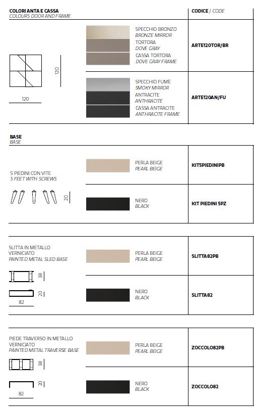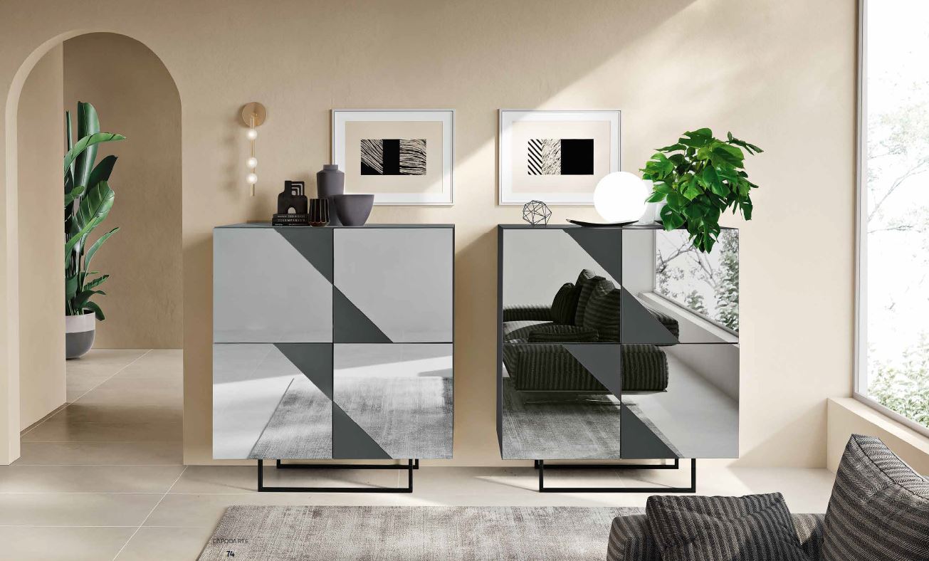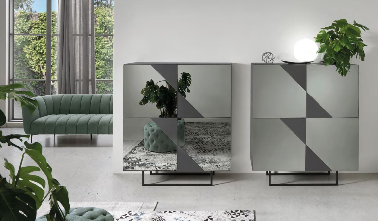 Arte è una madia che cattura lo sguardo grazie alla forza grafica delle sue superfici a specchio. Le ante in MDF, rivestite da vetri specchiati che alternano geometrie lucide e opache, disegnano un motivo elegante e contemporaneo. La scocca in nobilitato, coordinata in tinta, si completa con una base in metallo verniciato, proposta in tre differenti modelli. Disponibile in due misure – 120 e 180 cm – Arte riflette lo stile in ogni dettaglio.