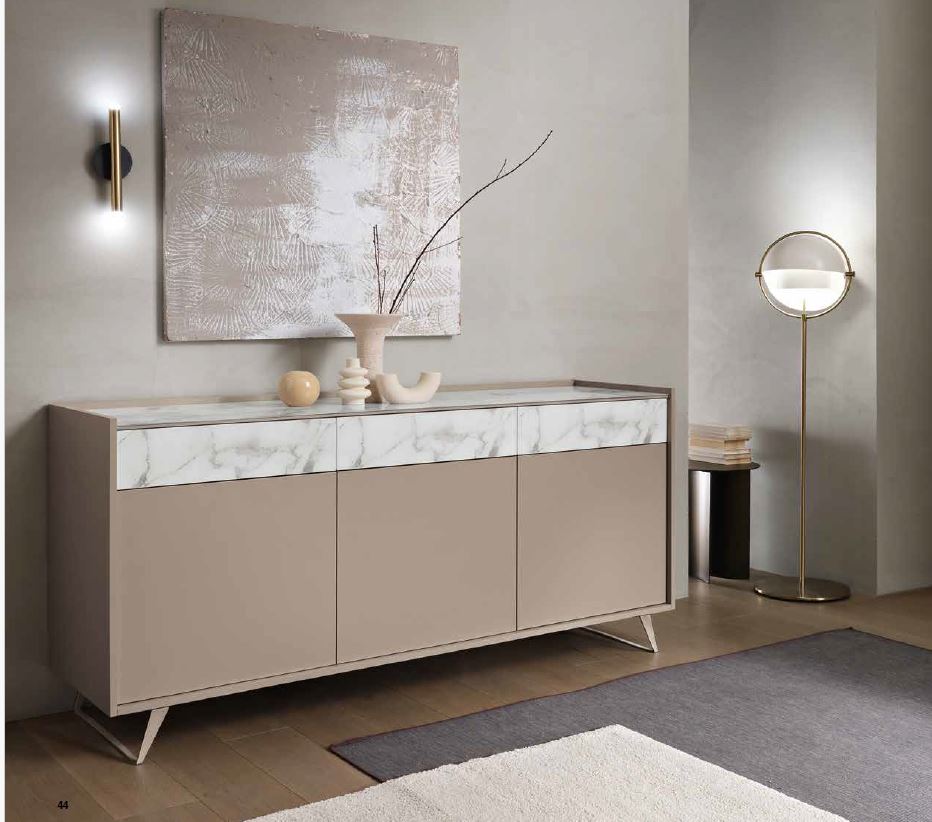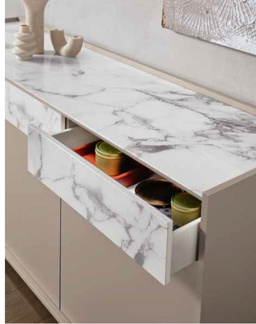 MADIA TORTORA CON CASSETTI E PIANO VETRO EFFETTO CALACATTA NATURALE