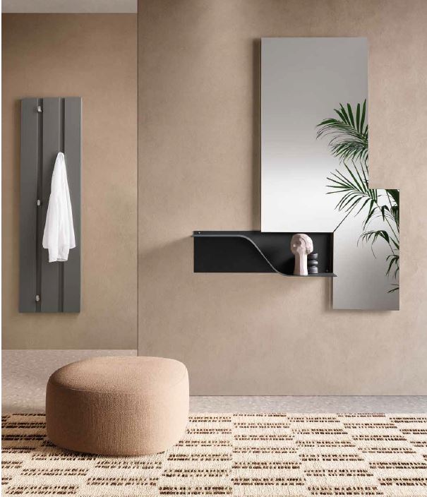 Mensola da parete realizzata in metallo, costituita da una struttura orizzontale rettangolare, semplice e lineare, resa unica da un elemento centrale ondulato. disponibile in un’unica dimensione e tre varianti colore.