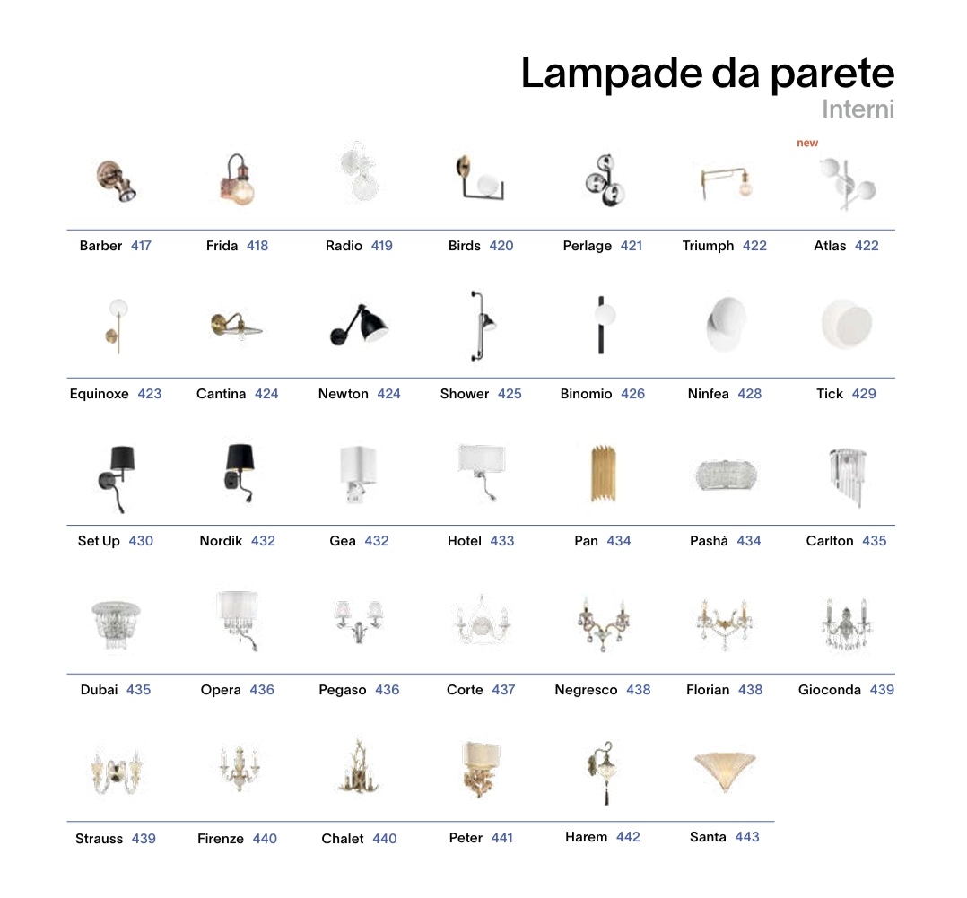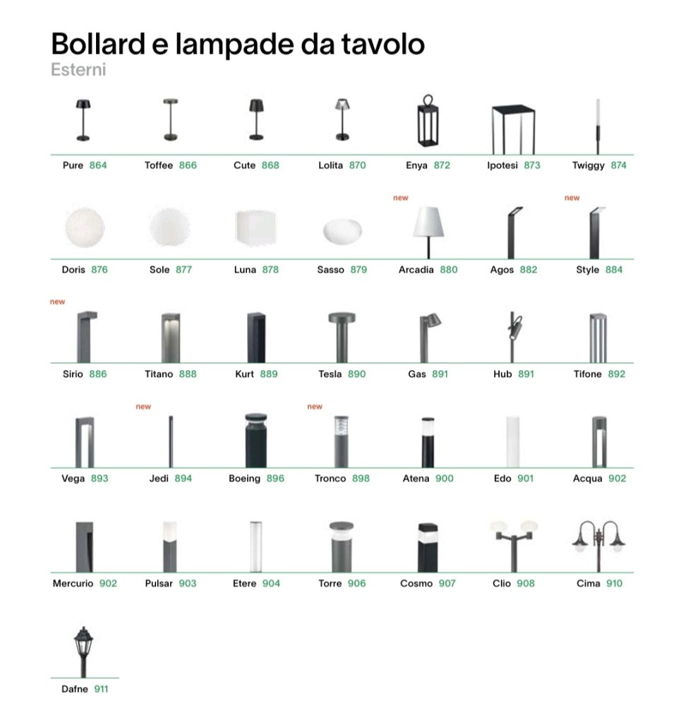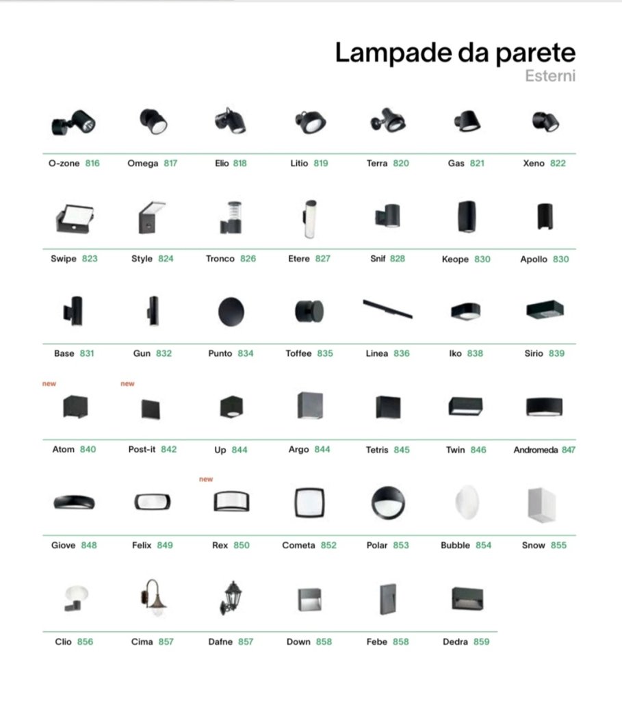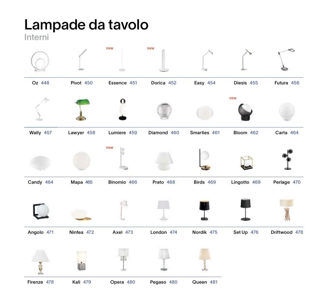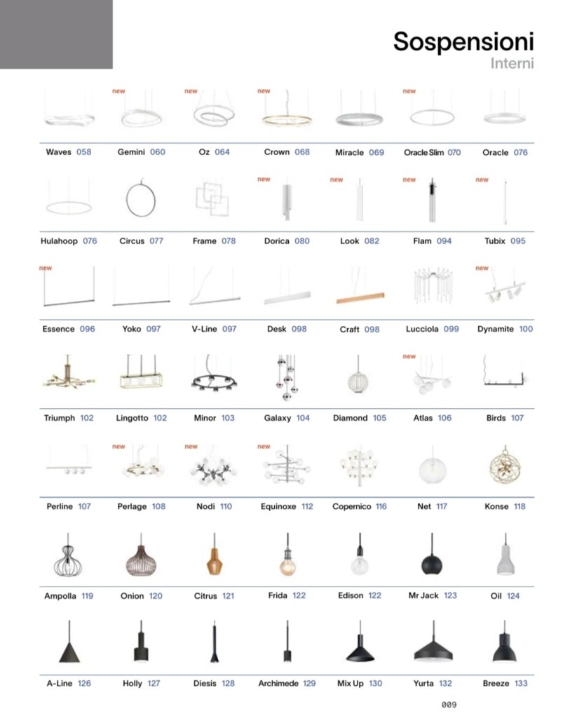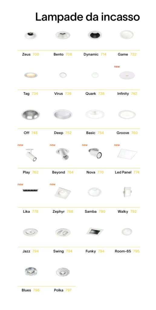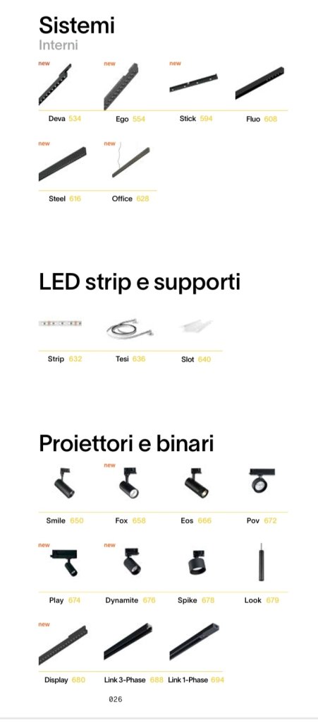 SOSPENSIONI, LAMPADE DA SOFFITTO-PLAFONIERE, LAMPADE DA TERRA-PIANTANE, LAMPADE DA TAVOLO, FARETTI, LAMPADE DA PARETE-APPLIQUE, SISTEMI, PROIETTORI BINARI, LED STRIP, ILLUMINAZIONE PER ESTERNO.