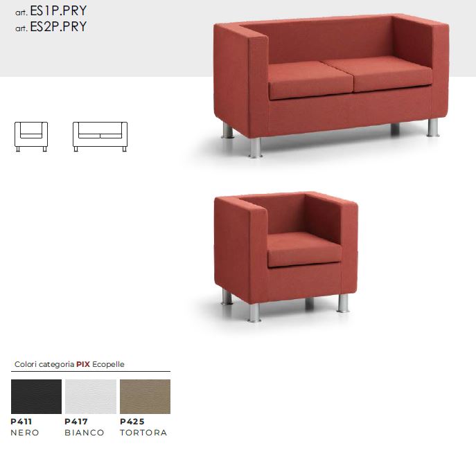 con struttura portante in multistrato di faggio, agglomerati lignei e cinghie elastiche di rinforzo, imbottitura in poliuretano espanso, piedi a cilindrico effetto alluminio.
