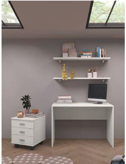SCRIVANIA 110+2 MENSOLE+CASSETTIERA LARICE BIANCO O OLMO