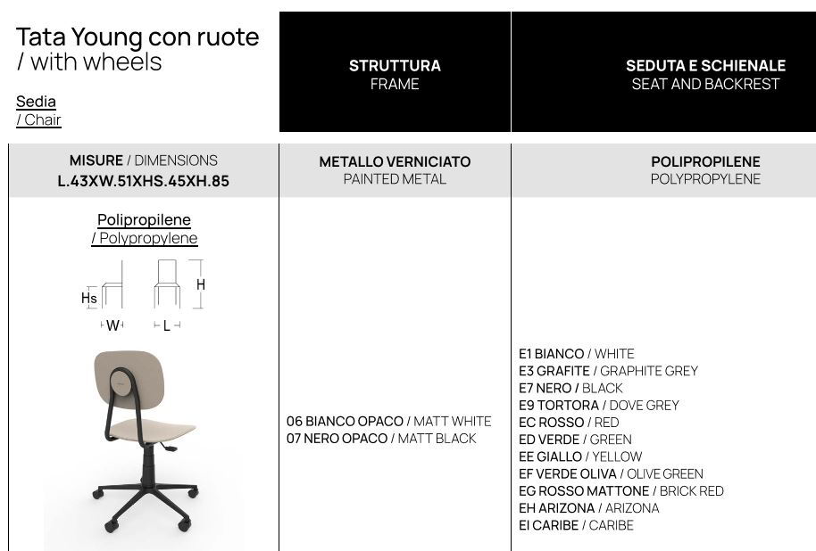 LA SEDIA PIU' VENDUTA, ORA ANCHE CON RUOTE , IN TANTI COLORI !