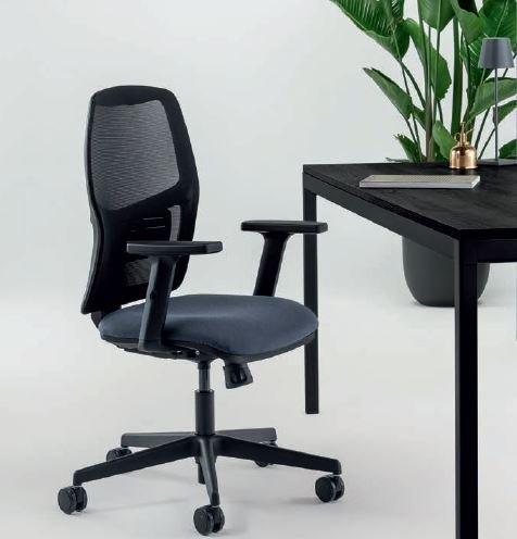 SEDUTA OPERATIVA CON SCHIENALE IN RETE, SEDILE IN GOMMA IGNIFUGA, MECCANISMO SINCRONIZZATO REGOLABILE IN 4 POSIZIONI, SUPPORTO LOMBARE REGOLABILE IN ALTEZZA E BRACCIOLI REGOLABILI