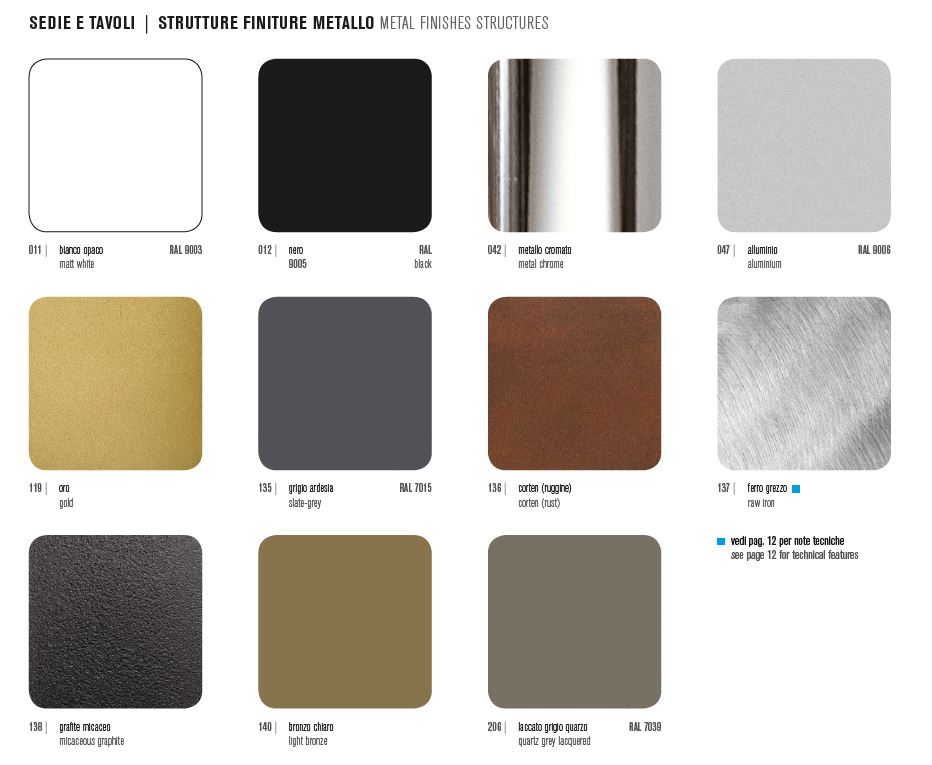 STRUTTURA METALLO NEI COLORI: BIANCO OPACO 011, ALLUMINIO GOFFRATO 047, GRIGIO ARDESIA 135, GRAFITE MICACEO 138, GRIGIO QUARZO 206