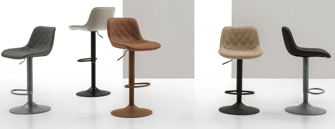 Sgabello regolabile in altezza con struttura in metallo verniciato e seduta imbottita e rivestita in morbido Easy-Touch.