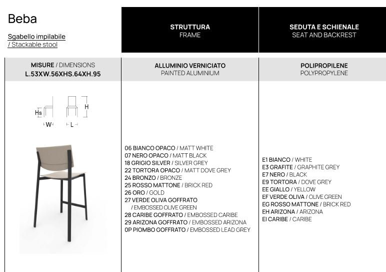 - BEBA ALLUMINIO PIEDINI COLORI COME STRUTTURA, BEBA YOUNG COLORI SEDUTA