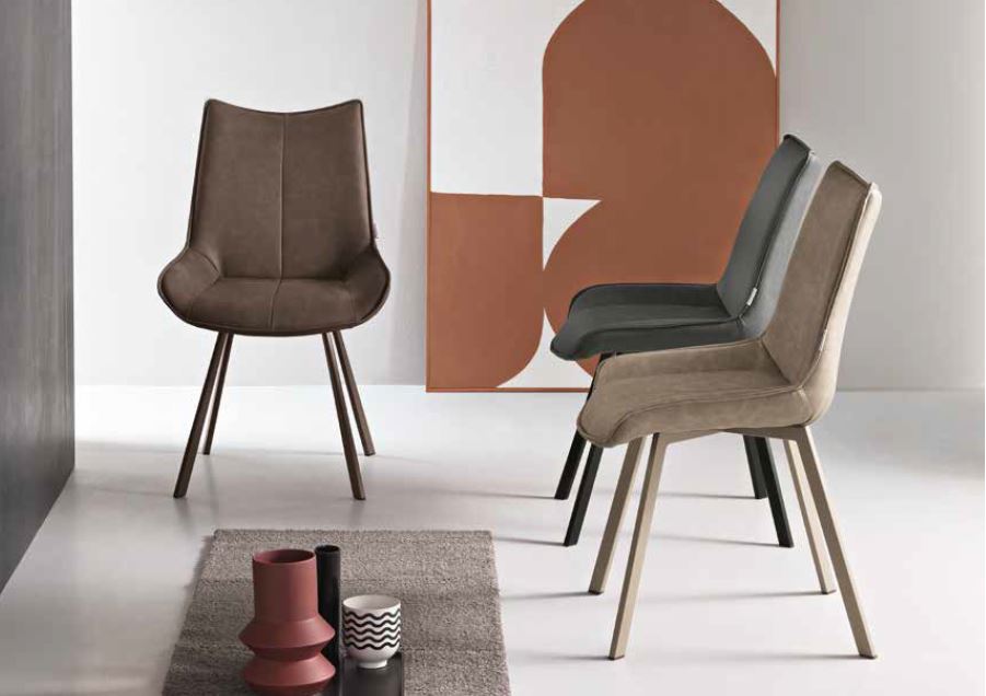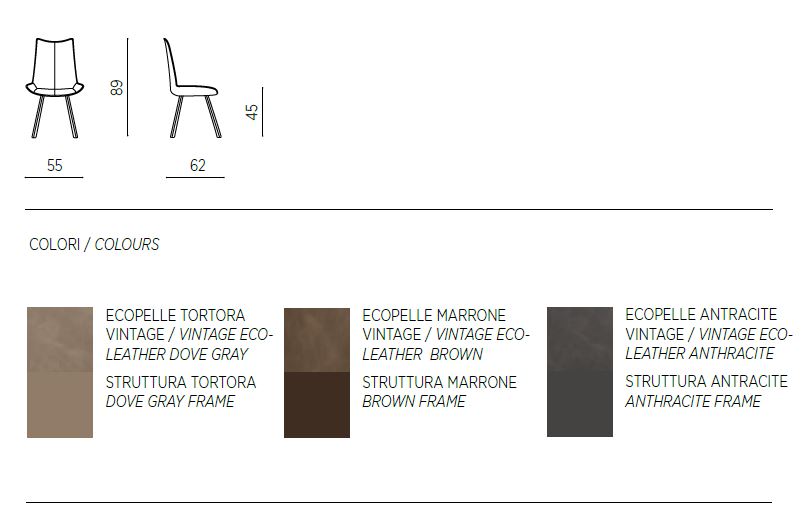 Sedia con struttura in metallo verniciato e seduta in ecopelle effetto vintage.L 55 P 62 H 89 HS 45 cm