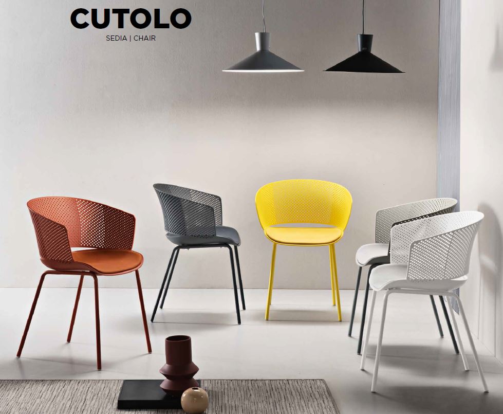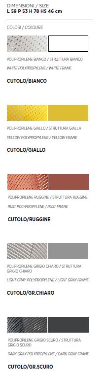 Sedia in polipropilene con seduta in ECOPELLEDisponibile in diversi colori.L 59 P 53 H 78 HS 46 cm
