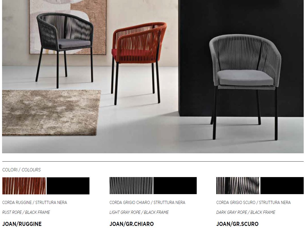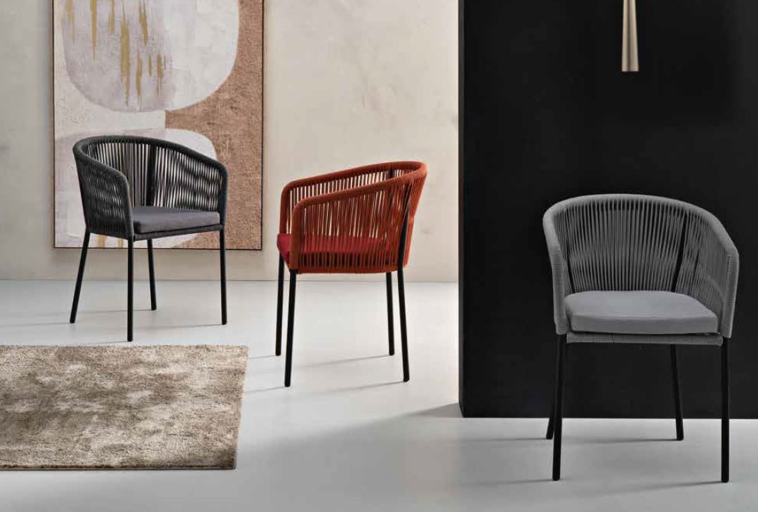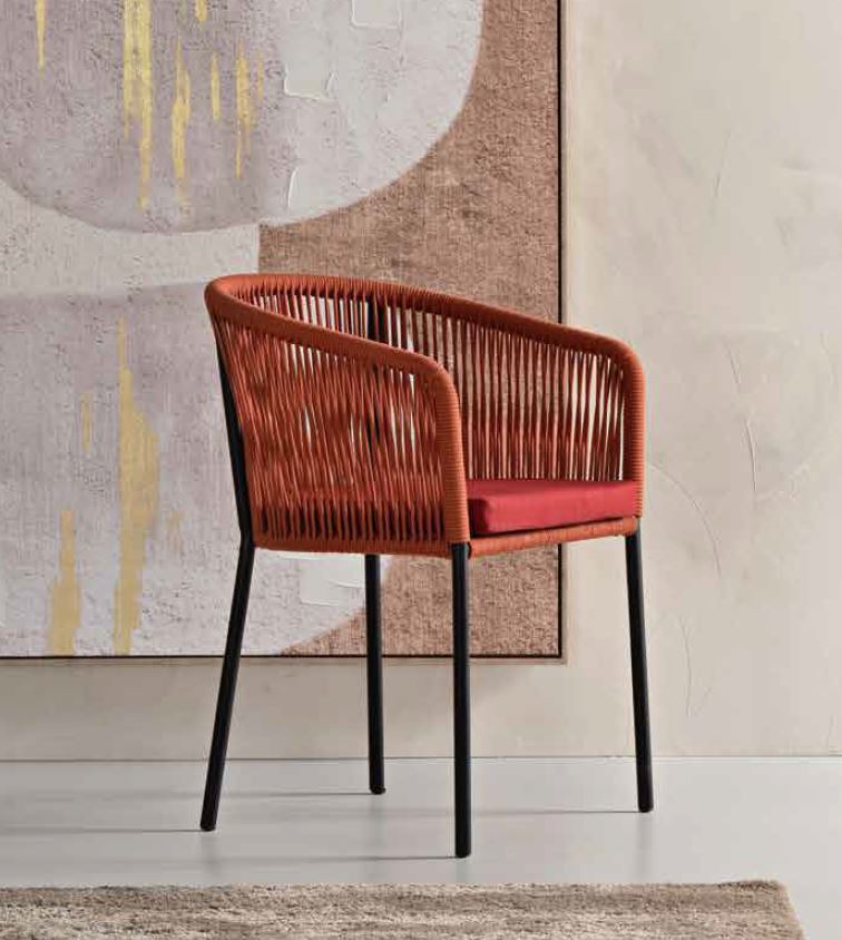 Sedia in corda con struttura in metallo verniciato.L 55 P 56 H 78 HS 50 cm