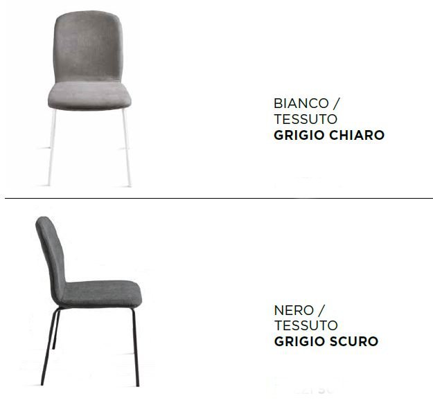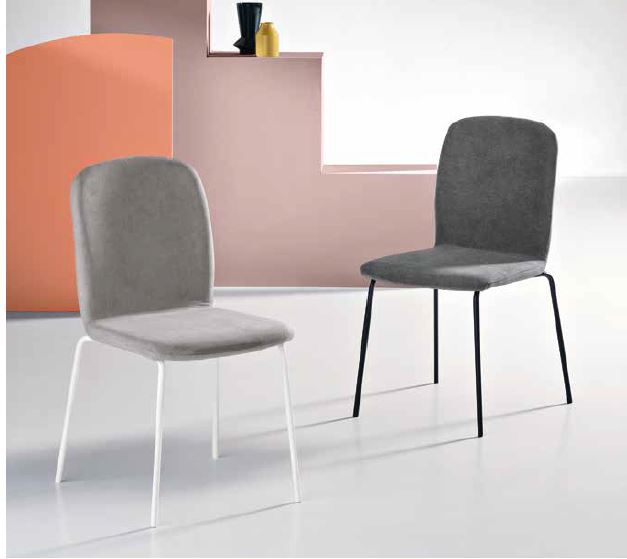 Sedia in tessuto con imbottitura e struttura in metallo. Disponibile in due colori.L 44 P 57 H 85 HS 45 cm