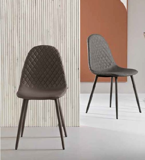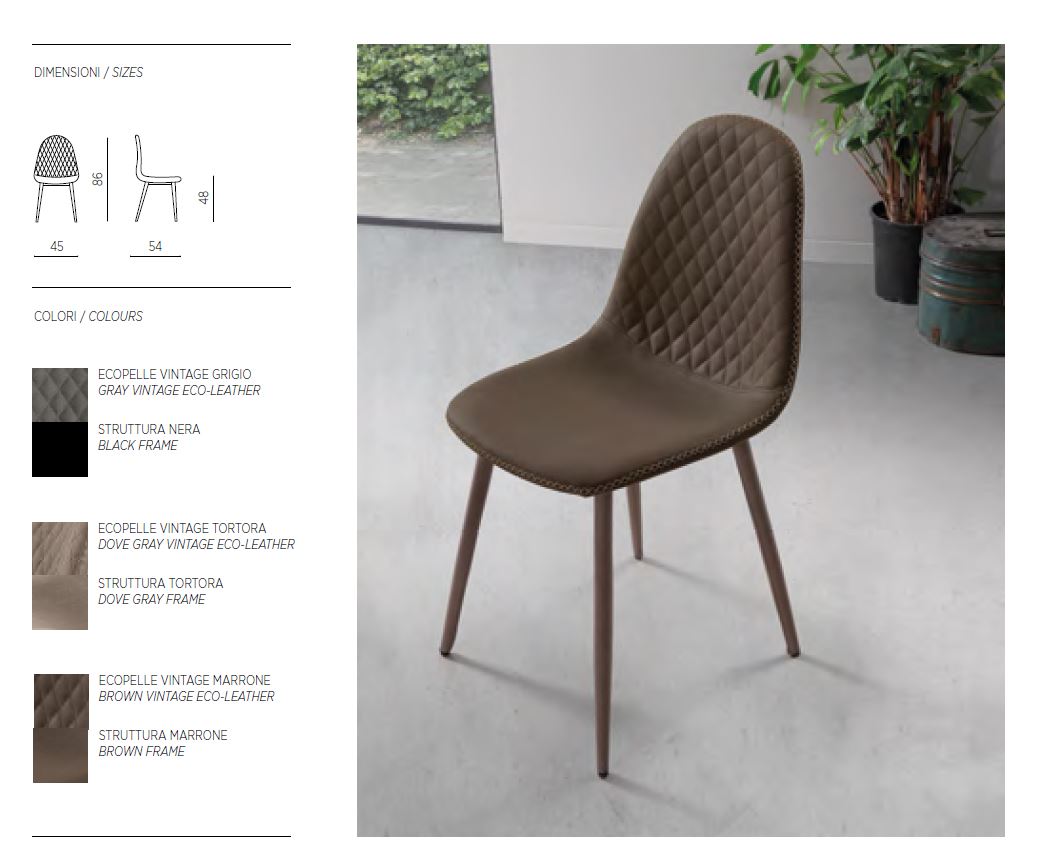 Sedia con imbottitura impunturata a rombi.Seduta e gambe in ecopelle vintage.