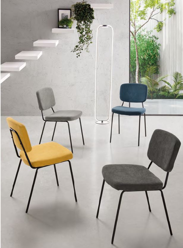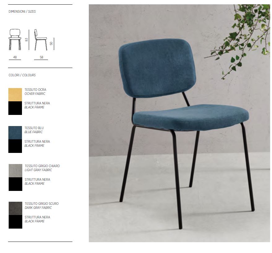 Sedia con struttura in metallo verniciato e seduta in tessuto imbottito.L 45 P 54 H 86 HS 48 cm