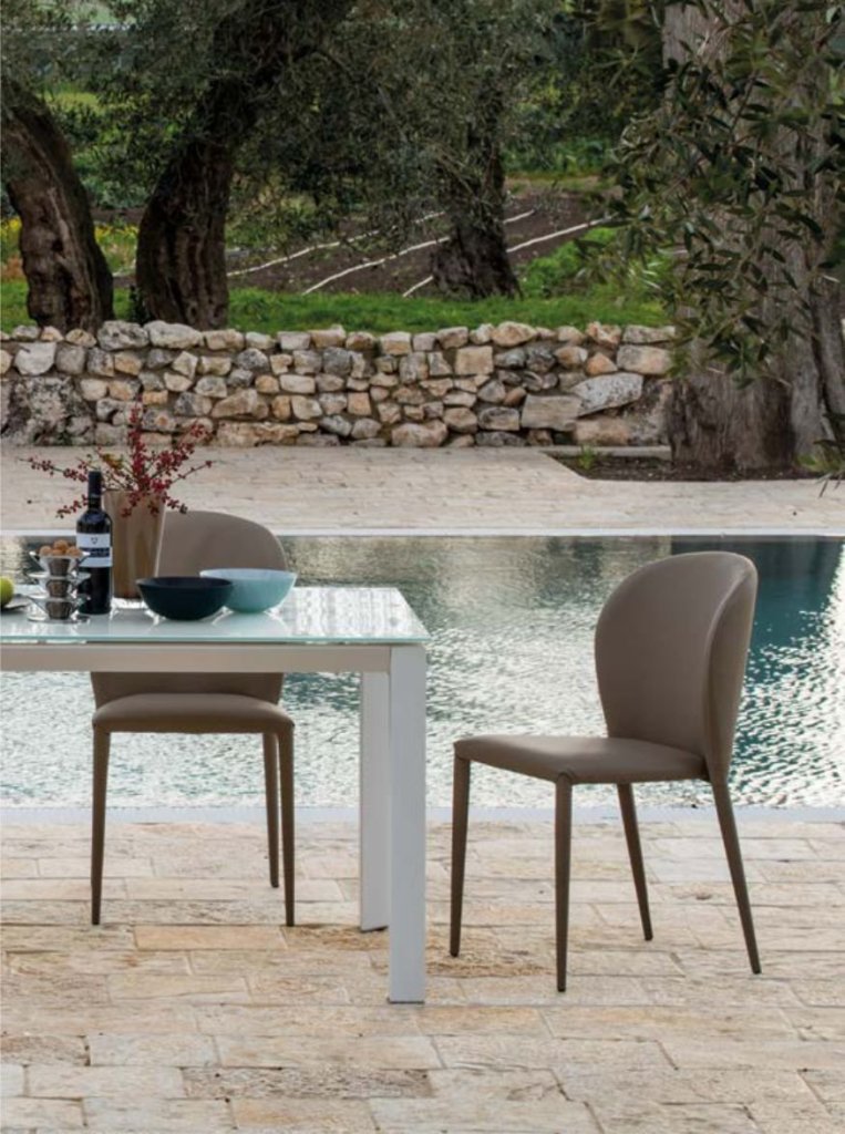 Sedia Brenda S102 con struttura in metallo interamente rivestita in similpelle in diverse varianti colore.