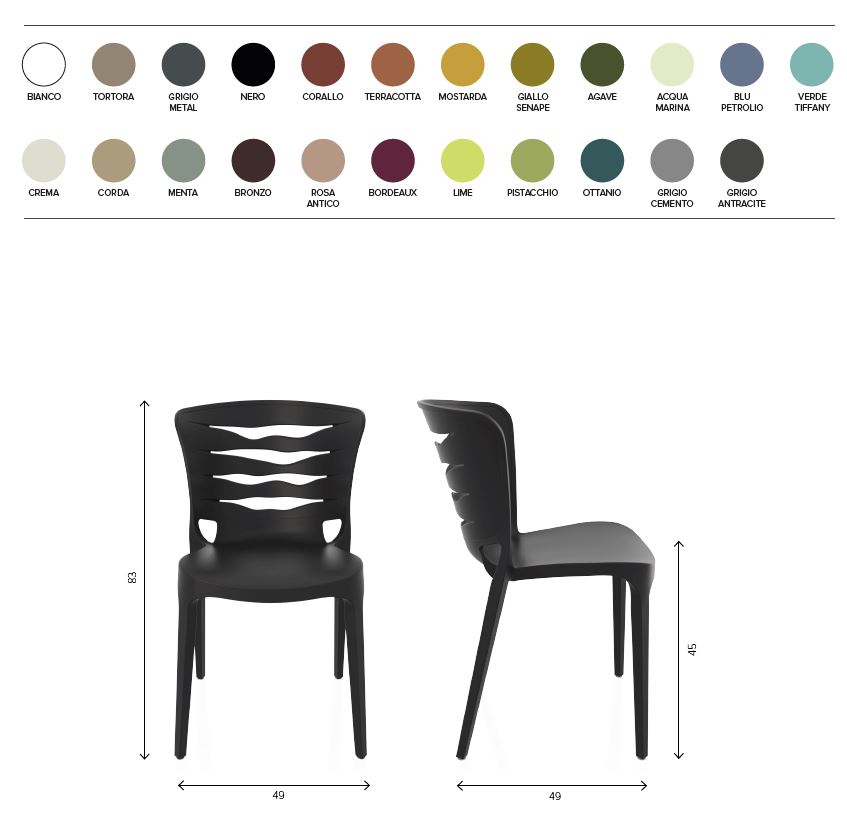 SET 4 SEDIE INTERNO-ESTERNO MO-OS, NUMEROSI COLORI
