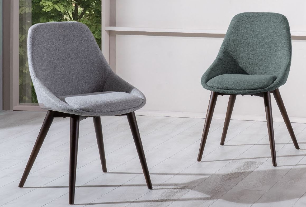 Chair with solid walnut wood strucutre covered in fabric. Walnut wood legs.
