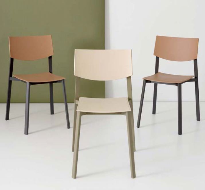SEDUTA E SCHIENALE IN POLIPROPILENE OPACO COLORI: BIANCO, GRAFITE, NERO, TORTORA, GIALLO, VERDE OLIVA, ROSSO MATTONE, ARIZONA, CARIBE