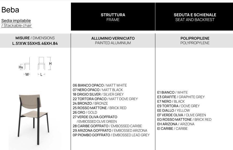 SET 4 SEDIE POINTHOUSE BEBA ALLUMINIO POLIPROPILENE